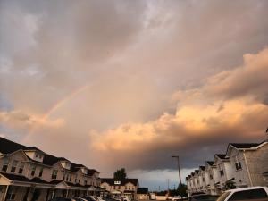 Here are pictures of rainbows taken at my townhouse. The first appeared on June 11th. The voice in my head said “We should go get ice-cream. No need to do anything, just get your purse and go!”. The rainbow lasted about 2 1/2 minutes with the double disappearing within a minute or so. The second Rainbow was on June 23rd, when I saw a golden glow out my back window. I got the inspiration to go out the front door and see what’s out there. This rainbow lasted six minutes. It was a full rainbow with a double, like the first one, but wasn’t as visible in the picture after taking the time to video tape it.